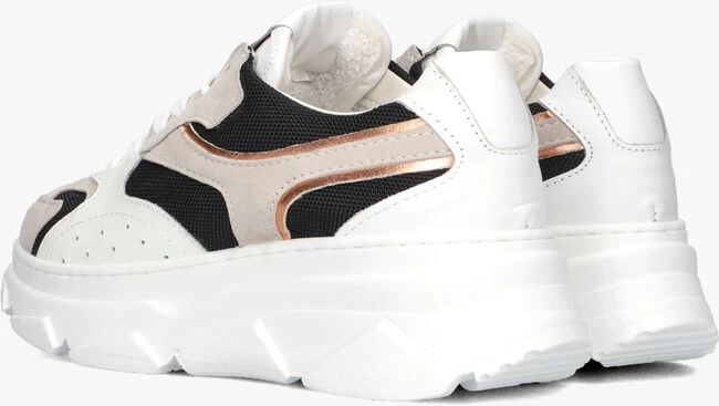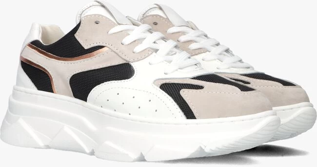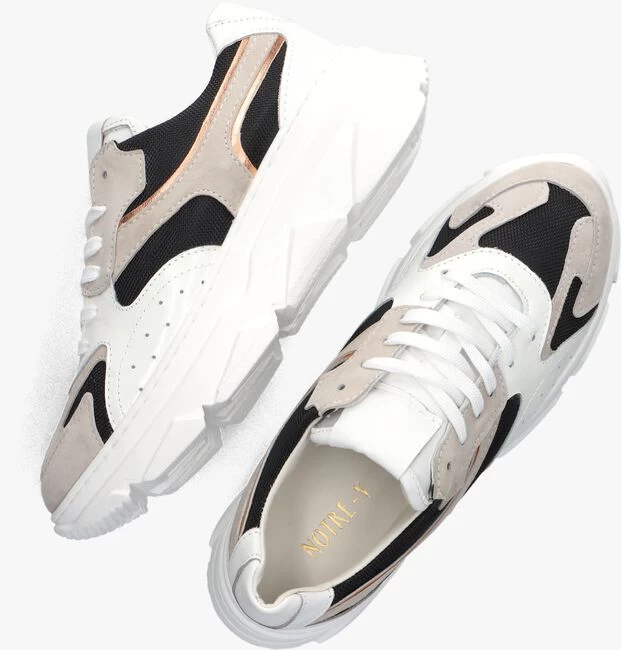 De elegante Italiaanse ontwerpen van het merk NOTRE-V zijn er voor de verfijnde vrouw die er graag effortless chic uit wil zien. Gemaakt van luxe materialen met mooie accenten en een knipoog naar de laatste trends. Deze moderne sneaker 06-60 heeft een veelzijdig bovenwerk en is uitgevoerd in zwart, geweven textiel met panelen van wit lakleer en beige suède. Extra tof is het metallic aan de zijkant, de perforaties aan de zijkant en de opvallende fashionzool die perfect is voor het nieuwe seizoen! Het binnenwerk is gemaakt van heerlijk zacht leer en badstof die samen met het dempende en uitneembare voetbed veel comfort biedt aan de voet. De rubberen fashionzool met uitbundige vormen is 3 centimeter dik onder de voorvoet en loopt naar achteren toe op tot 5,5 centimeter. Een supertrendy én comfortabele schoen om vrolijk van te worden in de stad en on the go!