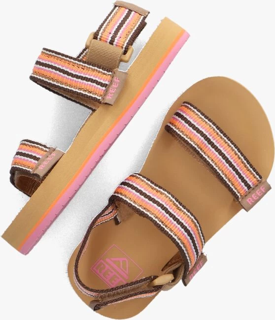 Comfortabel op pad gaat met deze sandalenĀ AHIĀ CONVERTIBLE uit de collectie van het merk REEF zeker lukken. Het bovenwerk is uitgevoerd in kleurrijk textiel met strepenĀ en alle bandjes zijn voorzien van een klittenbandsluiting waardoor je ām niet alleen snel en gemakkelijk aan- en uittrekt maar ook nog eens perfect passend maakt aan de voet.Ā De binnenkant van de bandjes zijn gevoerd met zacht textiel voor een comfortabel gevoelĀ en het beige rubberen voetbed zorgt voor een goede demping en een flexibele afwikkeling van de voet. Op het voetbedĀ vind je een roze merkopdruk en ook in de zoolrand vind je een oranje lijn terug. De roze loopzool is voorzien van eenĀ gripvastĀ profiel waardoor je een goede grip en stabiliteit ervaart.Ā Ā