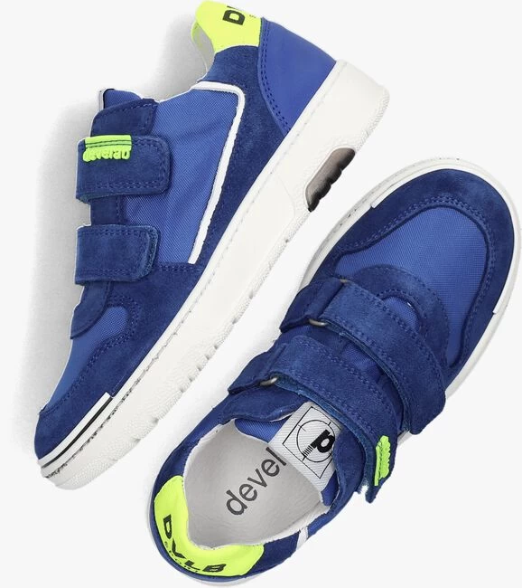 Een stoere sneaker maakt je outfit helemaal af. Deze lage sneaker 45791 komt uit de collectie van het merk DEVELAB en is uitgevoerd in blauw suède met strak geweven nylon textiel en heeft witte accenten op de voorvoet en zijkant. De gele hielcap en het merklabeltje op de klittenbandsluiting maakt dit model net wat opvallender. Het binnenwerk is gevoerd met leer en heeft een uitneembaar voetbed. De rubberen zool is gesierd met een tof reliëf patroontje en heeft een gripvast profiel.