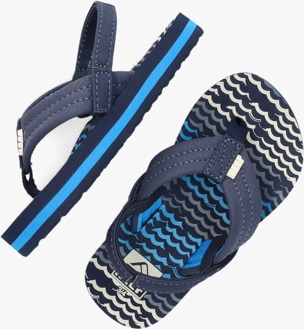 Fijn buitenspelen, een dagje naar de dierentuin of het strand, met deze sandaal LITTLE AHI uit de collectie van het merk REEF gaat dat zeker lukken. De buitenkant is gemaakt van blauwe polyester bandjes en zijn voorzien van een elastiek aan de achterzijde waardoor je ‘m niet alleen gemakkelijk en snel aan- en uittrekt maar ook nog eens perfect passend maakt aan de voet. Het blauwe voetbed met toffe print is uitgevoerd in rubber en zorgt voor een fijne demping en een goede afwikkeling van de voet. De zoolrand is gesierd met een roze accentstreep en de loopzool heeft een gripvast profiel.