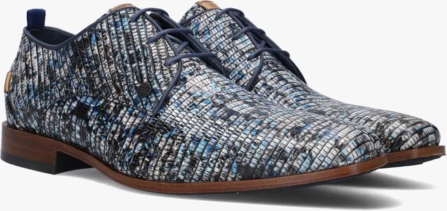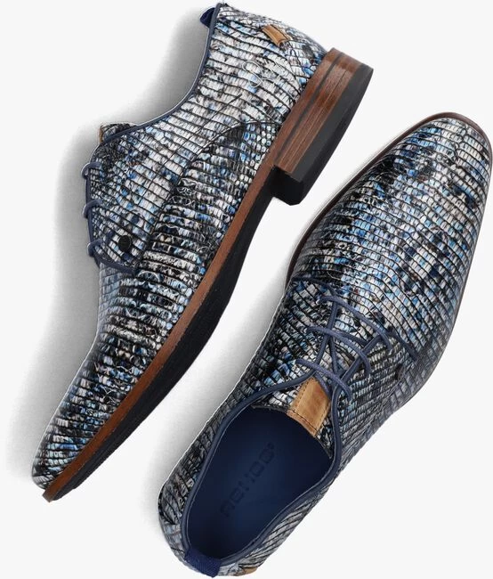 Met deze unieke nette schoen van het merk REHAB mag jij gezien worden! Deze blauwe schoen GREG METAL SHAVING is gemaakt van stevig leer met een reptielenreliëf en er komen veelzijdige kleurtinten in terug. Leuk detail is de aantreklus aan de hiel en de gewaxte, blauwe veters. De leren zool is afgewerkt met een bruine rubberen loopzool met spinnenwebbenprofiel en is van binnenuit doorgestikt, wat extra stevigheid en duurzaamheid biedt. De klassieke gelaagde hak met rubberen haktip met reliëf merkopdruk biedt een prettig loopcomfort en de zachte leren voering zorgt samen met het uitneembare voetbed voor een perfecte en comfortabele pasvorm.