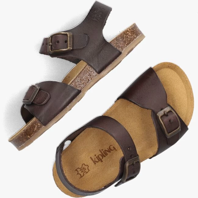 Deze toffe EASY 4 sandaal van het merk Kipling is hip én comfortabel! Dit model is uitgevoerd in donkerbruin leer met een bronzen gespsluiting op de beide bandjes, waarmee de sandaal goed passend gemaakt kan worden. Het suède voetbed is voorgevormd en zorgt daardoor voor veel comfort en ondersteuning in de voetholte. De suède voering van de bandjes voelt zacht aan op de voet en het kurk in de zool gaat zich na verloop van tijd naar de voet vormen, wat bijdraagt aan een goede afwikkeling van de voet. De lichtbruine loopzool met merkopdrukkenprofiel is gemaakt van anti-slip rubber met een goede grip. En daarnaast wordt er nog het welbekende, superleuke Kipling-aapje bijgeleverd, waarmee je je tas of sleutelbos direct opvrolijkt.