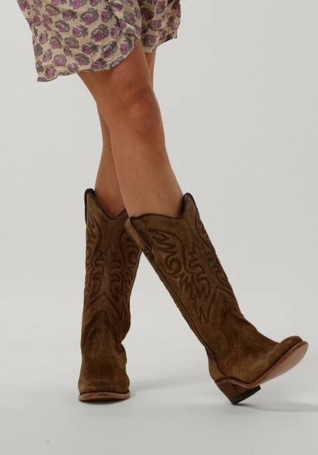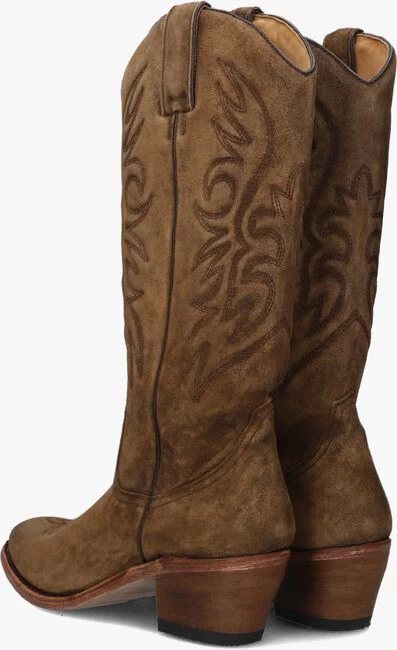 Deze bruine cowboylaarzen HELDEN van NOTRE-V zijn uitgevoerd in hoogwaardig suède met leren accenten. De schacht en voorvoet is voorzien van gestikte cowboy-accenten en je trekt ‘m gemakkelijk aan en uit met behulp van de twee aantreklussen. Het binnenwerk is gevoerd met zeer zacht leer en zorgt samen met het vaste leren voetbed met licht dempende schuimlaag voor een uitstekend comfort. De leren zool is voorzien van rubberen inzetten voor extra grip en is volgens de Goodyear-maakwijze aan de schoen bevestigd. Dit zorgt voor een zeer sterke, duurzame kwaliteit en een stoere uitstraling. De stevige, gelaagde hak is 6 centimeter hoog en voorzien van een rubberen haktip voor een stabiel loopcomfort en de schacht is 32 centimeter hoog.