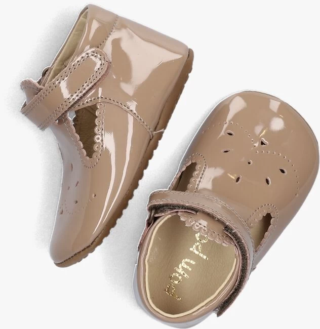 Met het zien van deze babyschoenen 1003 uit de collectie van het merk POM POM ben je toch in één klap verkocht?! Wat zijn ze toch ontzettend leuk, en wat zal jouw kleine meid hier de blits mee maken! De buitenkant van de sandaal is gemaakt van bruin lakleer met schattige uitsnijdingen op het bovenwerk en is voorzien van een klittenbandsluiting waardoor je ‘m supergemakkelijk aan- en uittrekt. Het binnenwerk heeft een leren voering met een vast voetbed. De rubberen zool heeft een fijne nopjes die zorgen voor een gripvast profiel en buigt fijn mee met de voet.