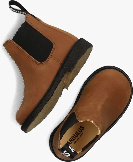 Het merk ANGULUS heeft zich al meer dan eens bewezen, het maakt namelijk al schoenen met de hand sinds 1904! Uiteraard altijd met de tijd meegegaan en nog altijd trendy zonder af te doen aan comfort. Want dat is hoe het allemaal begonnen is. Trends mogen er zijn maar ze moeten niet in de wegstaan voor comfort. Zeker niet bij groeiende kindervoetjes die volop in ontwikkeling zijn. Deze te leuke chelsea boots 6147 zijn uitgevoerd in cognackleurig nubuckleer en heeft mooie afwerkingen zoals de elastieken inzetten op de zijkant en het textiele aantreklusjes op de schacht met witte merkopdruk, voor extra gemak tijdens het aan- en uittrekken. Het binnenwerk heeft een leren voering met een vast voetbed en voelt comfortabel aan. De zwarte rubberen crêpezool is flexibel en buigt fijn mee met de voet en zorgt tegelijkertijd voor een goede grip en stabiliteit. Aan alles zie je dat ook dit schoentje uit de collectie gemaakt is van de hoogste kwaliteit materialen en met grote passie en vakmanschap. Â