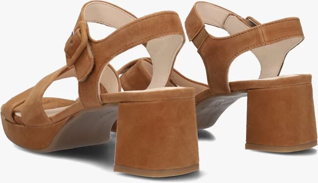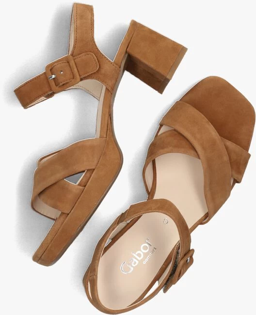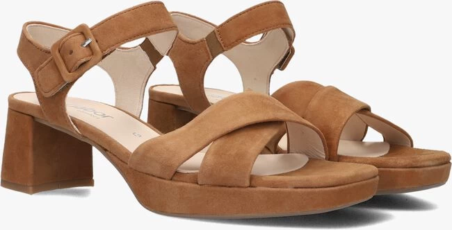 Loop vrolijk de zon tegemoet met deze fijne sandalen 933 uit de collectie van het merk Gabor. Dit cognackleurige model heeft twee gekruisde bandjes van suède over de voorvoet en het suède enkelbandje met klittenbandsluiting is fraai afgewerkt met een siergesp. Het binnenwerk is gevoerd met zacht leer. Opvallend is de suède afwerking aan het blokhakje van 6 centimeter voor een chic geheel. De aangename hakhoogte zorgt ervoor dat jij het heel de dag vol kunt houden op deze beauty’s en met de rubberen loopzool ervaar je veel grip.