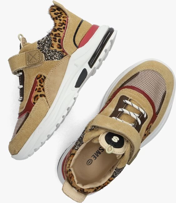 SHOESME is hét merk die weet waar je kinderen mee kunt verrassen. Dat doen ze door hun vrolijke kleurtjes, printjes en door de laatste trends te volgen. Maar zij weten ook precies waar je de ouders blij mee maakt. En dat is natuurlijk een goed voetbed, een goede ondersteuning van de voet én heel belangrijk, dat de schoentjes tegen een stootje kunnen. Deze leuke sneaker NR22W004 is zo’n voorbeeld hiervan! De buitenkant is gemaakt van panelen met bruin suède, panterprint ponyhair, glitter, mesh en rood leer. Opvallende details: de aantreklus bij de hiel, de zwarte lijn op de hielstabilisator, het rode inzetstuk en het rubberen merkembleem op de tong. Met het aan-en uittrekken ervaar je veel gemak door de klittenband sluiting en de elastische veters. Het binnenwerk is uitgevoerd in leer en heeft een uitneembaar voetbed. De rubberen zool met lijnen heeft zwarte inzetten en een gripvast profiel.