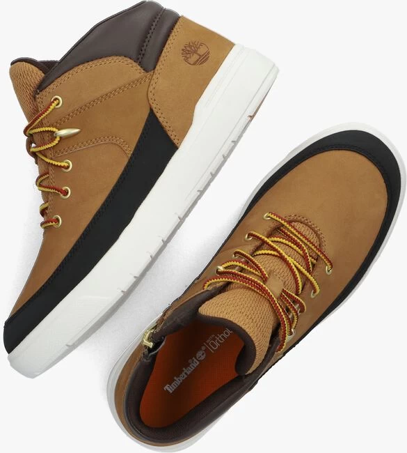 Je kind staat nooit meer stil met deze congackleurige, hoge sneakers SENECA BAY HIKER van het merk Timberland! Deze halfhoge, comfortabele schoen van eersteklas nubuck heeft een cognac gewatteerde enkelkraag van leer en een mesh tong met een stoere vetersluiting. Verder heeft dit model een toffe merkopdruk op de zijkant van de hiel, een stootrand op de neus en een handige ritssluiting aan de zijkant waarmee je ‘m snel aanschiet. Het binnenwerk is gemaakt van ademend mesh dat gerecycled materiaal bevat en de sneaker heeft een OrthoLite®-voetbed dat zorgt voor dempend comfort en is uitneembaar. De rubberen loopzool heeft een gripvast profiel dat voldoende stabiliteit en grip creëert bij iedere stap. Perfect voor avontuurlijke wandelingen!