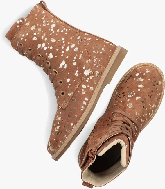 Deze stoere veterboots MEYA komen uit de collectie van het nieuwe merk TON & TON. Een kind moet kind kunnen zijn en daar horen nu eenmaal fijne schoenen bij die goed zitten, stevig zijn en waar ze goed mee kunnen bewegen! Uiteraard wordt er ingespeeld op trends en veel aandacht besteed aan de kwaliteit en details, dat zie je dan ook terug. Dit model is aan de buitenkant gemaakt van cognackleurig suède met een glimmende finish folie in dierenprint voor een stoer uiterlijk. Dankzij de handige ritssluiting aan de zijkant van de boot ervaar je veel gemak met het aan- en uittrekken. Deze boot is leer gevoerd en beschikt over een uitneembaar voetbed. De rubberen zool heeft een grof profiel en zorgt daardoor voor veel grip, steun en stabiliteit. Je draagt deze boot onder een jeans of juist onder een jurkje voor een stoere touch!