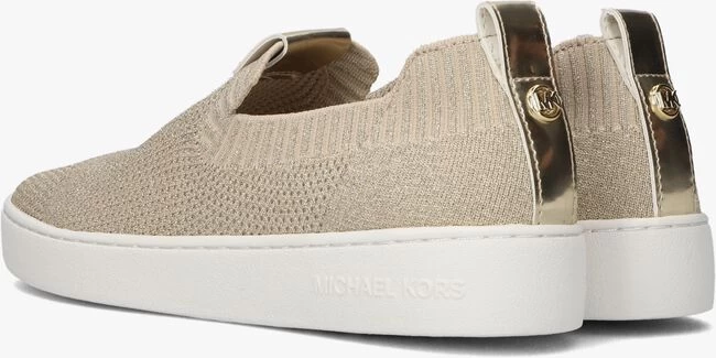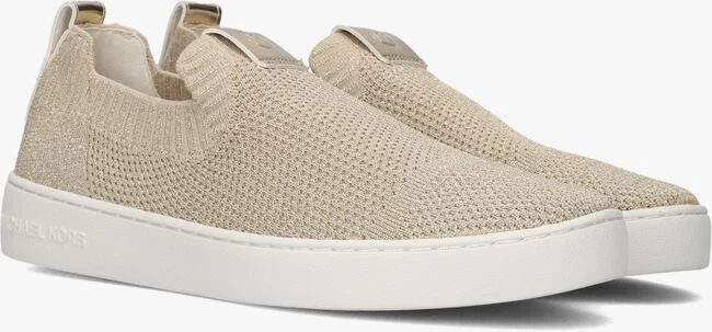 Deze instapper JUNO KNIT SLIP ON van MICHEAL KORS is gemaakt van goudkleurig textiel en heeft goudkleurige accenten. Zo is de tong voorzien van een merklabel en heeft de hiel een aantreklus met een goudkleurige merkstud. De voering is gemaakt van wit textiel en het dempende voetbed is niet uitneembaar. De rubberen zool met merkreliëf heeft een gripvast profiel. Draag dit sportieve model onder talloze outfits!