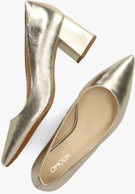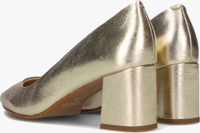 Ga jij voor grote hoogte? Deze vrouwelijke pump BRENDA van OMODA past perfect onder talloze outfits! Dit model is uitgewerkt in hoogwaardig, goudkleurig leer en heeft mooie kenmerken zoals de puntige neus en de beklede blokhak van ruim 6 centimeter hoogte. De voering is gemaakt van leer en het voetbed heeft een zachte demping. De pump is afgewerkt met een bruine loopzool met gripvast profiel.