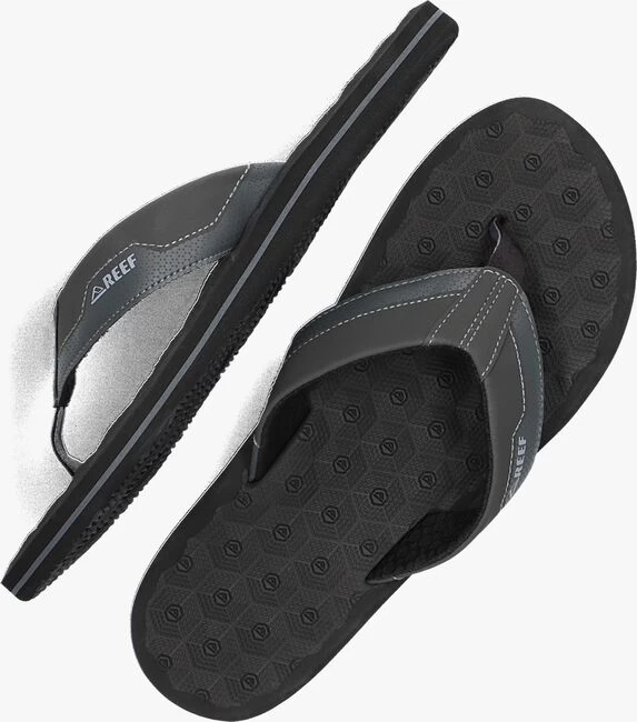 Uit de collectie van het merk Reef is deze comfortabele slipper THE RIPPER. Dit donkergrijze model heeft een anatomische vormgeving voor optimaal comfort tijdens ieder avontuur. De band van leatherlook is voorzien van een merkembleem en heeft een voering van textiel. De gevormde, rubberen buitenzool biedt maximale beweging en stabiliteit.