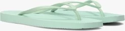 Vier de zomer met deze slipper TAPERED van het merk SLEEPERS. De bedenkers van het merk zagen hoe mooie stranden vol lagen met plastic en hoorden dat miljoenen slippers dagelijks op stranden en in de zee belanden. SLEEPERS wil deel uitmaken van de oplossing voor dit probleem en creëert daarom duurzame slippers, waaronder dit toffe model in de kleur mint. Deze slipper is gemaakt van hoogwaardig, natuurlijk rubber dat biologisch afbreekbaar en duurzaam is. Naast dat deze slippers een bewuste keuze zijn, loop je er op dit model trendy én comfortabel bij. De smalle bandjes maken de slipper elegant en het voetbed met een print in reliëf maakt dit item uniek. Opvallend is ook de afgeronde carré neus en de merknaam in reliëf die zowel op het voetbed als de loopzool staat. Door het gripvaste profiel van de zool trotseer je alle zonnige terrassen, gezellige boulevards en mooie stranden die in jouw zomeragenda staan!