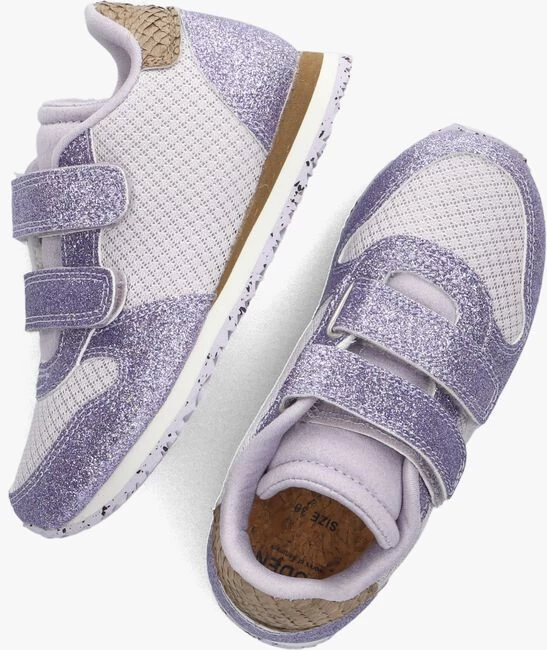 Met deze paarse lage sneakers YDUN GLITTER II KIDS van het Scandinavische merk WODEN draag jij je steentje bij aan een beter milieu én zal je opvallen op het schoolplein. Schoenen van dit duurzame merk worden gemaakt met een hoog bewustzijn voor de herkomst van de materialen en er wordt kritisch gekeken naar de inbreuk op het milieu. Het merk toont respect voor de wereld door de schoenen heel aandachtig te maken van veelal organische materialen zoals kurk en volnerfleer en daarnaast wordt er visleer uit de Noordzee gebruikt om milieubelastend materiaal te vervangen. Zelfs de schoenendoos is geproduceerd van gerecycled karton! Dit model heeft een bovenwerk van geweven textiel met panelen van paarse glitters. De enkelkraag en tong zijn heerlijk gevoerd en afgewerkt met zacht textiel wat veel comfort biedt aan kleine voetjes. De schoen heeft een uitneembaar, schokabsorberend voetbed van kurk voor een uitstekend comfort. De tussenzool is van microrubber, waardoor dit schoentje licht in gewicht is en hij heeft een opvallende groene accentstreep. Dankzij de gespikkelde loopzool van natuurrubber en 10% gerecycled rubber geeft dit model jouw outfit een speelse finishing touch.