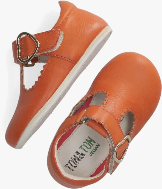Die lieve kleine voetjes bescherm je natuurlijk met zo’n té schattig babyschoentje van TON & TON. Dit oranje model CHARLOTTA is uitgevoerd in vegan lederlook met een kartel afwerkrandje en een goudkleurig gespje in de vorm van een hartje. Het binnenwerk is tevens gemaakt van vegan leer en het voetbedje is uitneembaar. De zachte voering en het comfortabele buigzame rubberen zooltje zorgen voor een optimaal comfort en een goede ontwikkeling van de voet. Doordat hij fijn mee buigt wikkelt het voetje goed af en het gripvaste profiel zorgt voor een goede grip en stabiliteit wanneer je kleintje al probeert om te gaan staan of zelfs die eerste voorzichtige stapjes te zetten.