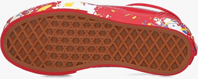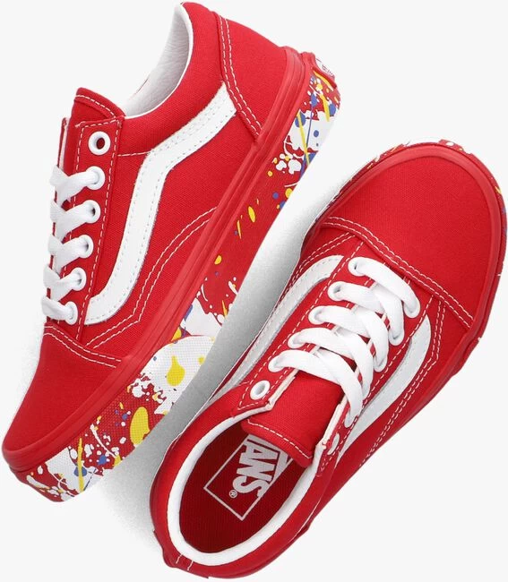 Dit populaire model OLD SKOOL UY is één van de bekendste modellen van het merk Vans. Deze rode skateschoen is uitgevoerd in canvas en heeft een voering van textiel met een vast voetbed. Opvallende details zijn de bekende leren lijn op de zijkant, het merklabel op de hiel en de geverfde print op de zool in de kleuren blauw wit en geel. De gevoerde enkelkraag biedt ondersteuning en flexibiliteit en de rubberen zool met wafelprofiel biedt grip bij het lopen.