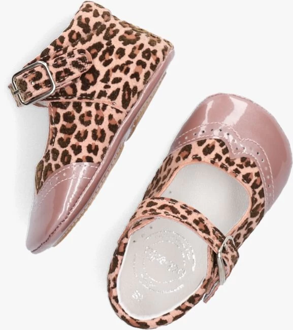 Met het zien van deze babyschoenen CADDO uit de collectie van het merk BEBERLIS ben je toch in één klap verkocht?! Wat zijn ze toch ontzettend leuk, en wat zal jouw kleine meid hier de blits mee maken! Het decoratieve bovenwerk is van zacht en soepel roze suède met een te gekke panterprint en een roze lak accent aan de neus met decoratieve brogue perforaties. Je trekt ‘m super makkelijk aan en uit dankzij het gespje op de wreef, waarmee je ‘m ook perfect passend kan maken aan de voetjes. De voering en het voetbed is gemaakt van zacht leer en heeft een loopzool met het zelfde roze lakaccent en een rubber loopvlak onder de voorvoet en hiel voor genoeg grip.