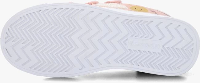 SHOESME is hét merk die weet waar je kinderen mee kunt verrassen. Dat doen ze door hun vrolijke kleurtjes, printjes en door de laatste trends te volgen. Maar zij weten ook precies waar je de ouders blij mee maakt. En dat is natuurlijk een goed voetbed, een goede ondersteuning van de voet én heel belangrijk, dat de schoentjes tegen een stootje kunnen. Deze leuke lage sneaker SH23S001 is zo’n voorbeeld hiervan! De buitenkant is gemaakt van roze nubuck leer met een witte hielcap en een lief zonnetje en wolkje op de zijkant. Dit model heeft drie handige klittenbandsluitingen waarmee je veel gemak ervaart bij het aan- en uittrekken en je ze gemakkelijk passend maakt naar het voetje van jouw kind. De neus is voorzien van een witte rubberen stootneus, zo blijven de schoentjes langer mooi, ook als ze nog vaak op de grond spelen. Het binnenwerk is uitgevoerd in leer met een uitneembaar dempend voetbed. De rubberen zool met gripvast profiel is stevig en tegelijkertijd ook soepel zodat de voet goed kan afwikkelen.  Â