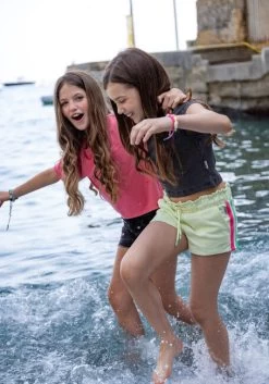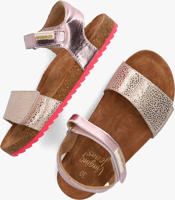 Voor de hippe, modebewuste jonge meiden heeft VINGINO deze sandaal TAVI ontworpen. De buitenkant is gemaakt van metallic roze leer met een lichtroze rubber merkembleem. Het brede bandje op de voorvoet is gemaakt van zacht, lichtroze suède met een glanzende folie. Door middel van de klittenbandsluitingen op de voorvoet en het wreefbandje trek je ‘m gemakkelijk aan en uit en maak je hem passend aan de voet van je kind. De suède voering en het licht voorgevormde voetbed biedt veel comfort, de kurken tussenzool gaat zich naar verloop van tijd vormen naar de voet en het rubberen loopzooltje zorgt voor een goede grip en stevigheid. Waar doe jij hem naartoe aan?