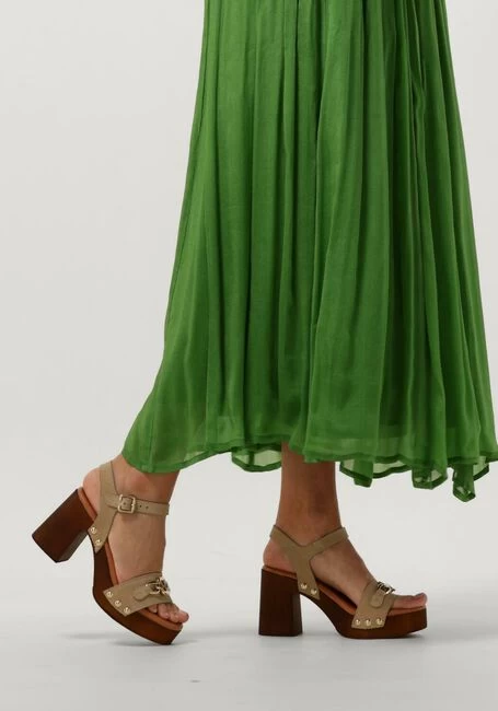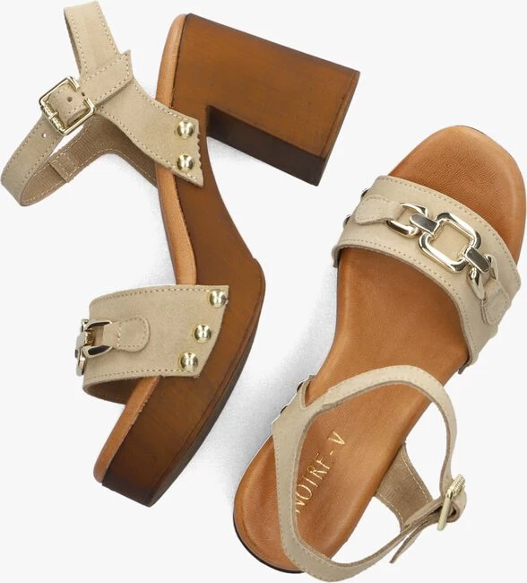 De elegante Italiaanse ontwerpen van het merk NOTRE-V zijn er voor de verfijnde vrouw die er graag effortless chic uit wil zien. Gemaakt van luxe materialen met mooie accenten en een knipoog naar de laatste trends. Deze trendy sandalen zijn niet alleen heel mooi om te zien, maar maken jou outfit helemaal af. Dit taupekleurige model 8635 met hoge blokhak en plateau heeft brede bandjes van suède over de wreef die op de zijkant van de zoolrand bevestigd zijn met opvallende bolstuds voor een stoere look. De sandaal is gevoerd met leer en suède en het voetbed heeft een gewatteerde vulling voor dempend comfort de hele dag door. De plateau en blokhak met houtlook geeft deze sandaal die eigenwijze jaren ’70 look. De blokhak is 10 centimeter hoog, maar door het plateau onder de voorvoet met een dikte van 3,5 centimeter loopt deze sandaal lekker comfortabel. Waar draag jij ‘m bij?Â