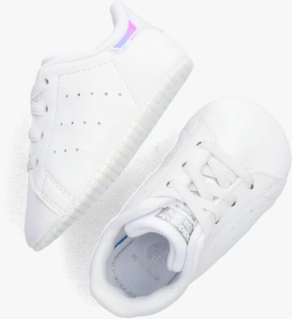 Verras je kleintje (of die van je vriendin) met deze sportieve babyschoentjes van Adidas Originals. Dit witte STAN SMITH CRIB is uitgevoerd in leatherlook materiaal met een holografische inzet op de hiel en een voering van mesh textiel met een uitneembaar voetbed. Dit model heeft op de zijkanten subtiele perforaties in de kenmerkende 3-stripes en op de hiel en de tong bevinden zich merkopdrukken. Deze schoen heeft een flexibele textiel zool met een rubberen antislip profiel en met de handige vetersluiting trek je ‘m ook nog eens heel gemakkelijk aan.