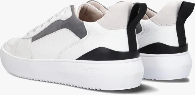 Het merk BLACKSTONE maakt stoere schoenen met een perfecte pasvorm. Van kwalitatieve materialen en gemaakt door vakmensen. En dat voel je. Dit minimalistisch witte design MYKEL is een lage sneaker met stijl en comfort! Hij is uitgevoerd in leer met opvallende overlays, grijs suède, perforaties op de neus en zwarte accenten. De hiel is voorzien van textieltape met aantreklus, een zwarte hielstabilisator en de tong heeft een subtiel merkreliëf. Daarnaast heeft deze unieke sneaker een gevoerde enkelkraag en tong voor een mooie aansluitende pasvorm en een prettig comfort. Het binnenwerk is gemaakt van leer met een uitneembaar voetbed. Dit casual model heeft een rubberen kuipzool met een ribbelprofiel en reliëf merkopdruk op de zoolrand.