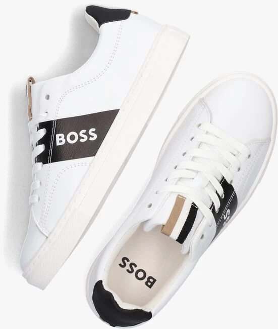 Met deze lage sneaker J29336 uit de collectie van het merk BOSS KIDS ben jij verzekerd van een comfortabele gevoel. De buitenkant is gemaakt wit leatherlook met zwarte accenten. Opvallend is de zwarte bies met witte merkopdruk op de zijkant, de rubberen hielcap en het aantreklusje in de BOSS kleuren op de tong en hiel. Het binnenwerk heeft een mesh voering wat erg zacht en comfortabel aanvoelt en beschikt over een lederlook uitneembaar voetbed. De witte, rubberen zool maakt dit model helemaal af. Combineer ‘m bij talloze outfits!