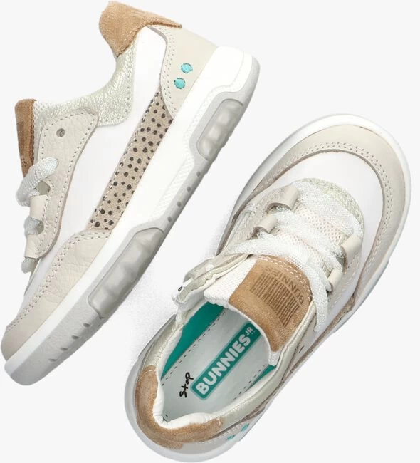 Voor de inmiddels goede stapper is er de Stap collectie van het Nederlandse merk BunniesJR, een stevig en sterk schoentje maar ook nog steeds flexibel. In dit sportieve lage sneakertje NOAH NOVA ervaart je kind veel steun en stabiliteit waar nodig maar dragen ze ook bij aan een goede houding en afwikkeling van de voet. De buitenkant is gemaakt van wit leer in combinatie met beige panelen van leer en suède. Extra tof is de mesh tong met camelkleurig merklabel, de goudkleurige enkelkraag, de kenmerkende, blauwe Bunnies stippen op de hiel en natuurlijk de opvallende glitterveters. Deze sneaker is leer gevoerd en heeft een uitneembaar voetbed. De sportieve fashion zool is gemaakt van rubber, heeft een transparant accent, is flexibel en heeft een gripvast profiel in de loopzool. Nog idealer, je kunt dit model gemakkelijk aan en uittrekken dankzij de ritssluiting aan de binnenzijde!