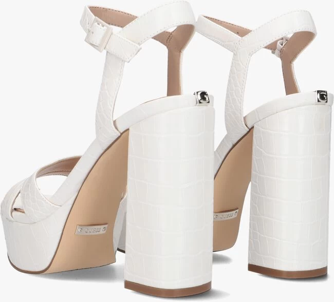 Een mooie outfit maak je natuurlijk helemaal af met een opvallende pump zoals dit witte model ZELINA van het merk GUESS! Deze pump met een bovenwerk van krokodillenprint leatherlook heeft mooie kenmerken zoals de brede band over de voorvoet en smalle bandjes om de enkel met een gespsluiting. Hierdoor blijven deze pumps goed aan je voeten zitten. Extra opvallend is de plateauzool van 4 centimeter onder de voorvoet en heeft een blokhak van ruim 12 centimeter. Dit model geeft jouw een flinke dosis zelfverzekerdheid en dankzij de kunststof zool met ribbelprofiel heb je een goede grip. Het leren voetbed is voorzien van een zachte dempende schuimlaag, zodat je het er de hele dag en avond op vol kunt houden. Combineer ‘m bij jouw favoriete outfit en steel de show!