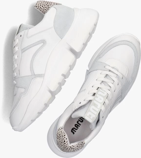 Van het Nederlandse merk MARUTI is deze witte lage sneaker CODY. MARUTI staat voor schoenen met cleane designs en bijzondere kwaliteit. Ieder paar MARUTI’s is uniek door de natuurlijke materialen en experimentele wassingen! Deze dadsneaker is gemaakt van gladleer met panelen van lichtgrijs suède, een hielcap van ponyhair met pixelprint en een wit textiel merklabel op de tong. Het binnenwerk is uitgevoerd in leer en heeft een uitneembaar dempend voetbed voor optimaal loopcomfort. Opvallend detail is de lichtgewicht chunky zool met een golvende lijn en fijn reliëf op de zoolrand. De zool is onder de voorvoet 2 centimeter hoog en loopt naar achteren toe op tot 4 centimeter, voor net die extra centimeters. Een basic witte sneaker kan niet ontbreken in je schoenen collectie en is eenvoudig te combineren onder talloze outfits. Waar draag jij hem bij?