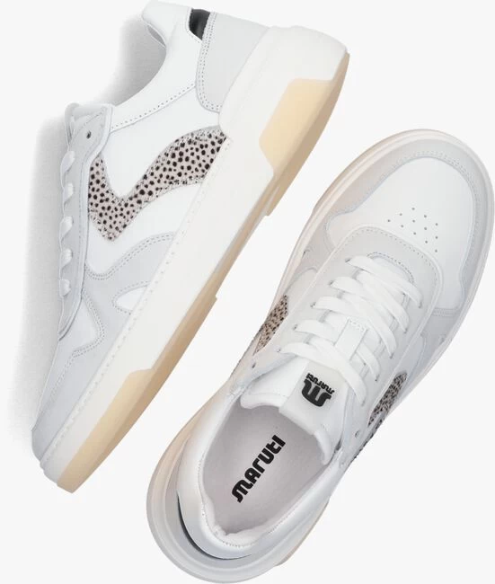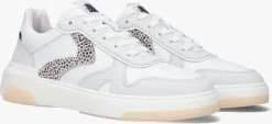 Van het Nederlandse merk MARUTI is deze toffe slipper JOLIE. MARUTI staat voor schoenen met een clean design en een bijzondere kwaliteit. Ieder paar MARUTI’s is uniek door de natuurlijke materialen en experimentele wassingen! Deze lage sneaker is gemaakt van wit leer en heeft grijze nubuck overlays. Toffe details zijn de perforaties op de neus, het dierenprint ponyhair, de zwarte inzet op de hiel en het rubberen merkembleem op de tong. De voering is ook gemaakt van leer en het voetbed is uitneembaar. Je ervaart extra comfort dankzij de gewatteerde enkelkraag en hielstabilisator. De rubberen zool is licht van gewicht en de transparante loopzool heeft een gripvast profiel.