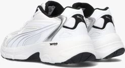 Deze witte R78 INF lage sneaker met blauwe en gele accenten van het merk Puma is een echte klassieker. Dit model is gemaakt van stevig nylon met suèdelook overlays. Op de tong, zijkant en hiel prijken merkopdrukken en de zijkant is voorzien van een geel logo. Extra tof is het blauwe textiel op de zijkant, de witte tong en de grijze, leatherlook hielstabilisator. Het binnenwerk is gevoerd met mesh in combinatie met textiel en heeft een uitneembaar soft foam voetbed. Je trekt ‘m gemakkelijk aan en uit dankzij de handige klittenbandsluiting. De microrubberen zool met donkerblauw accent heeft een gripvast profiel en geeft de schoen een echte retro look. Combineer hem stoer onder een toffe jeans!