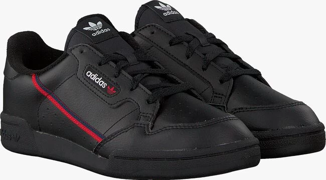 Deze zwarte lage sneaker CONTINENTAL 80 C van het merk Adidas is geïnspireerd op de jaren 80 indoorsportschoen. De buitenkant is gemaakt van leer in combinatie met lederlook overlays en heeft een textiel streep aan de zijkant van de schoen in de kleuren rood en donkerblauw. Het merkvenstertje naast de veters, de textiel tong en de perforatiegaatjes geven de schoen een tennis look. De voering is gemaakt van heerlijk zacht textiel en het voetbed is uitneembaar. Samen met de rubberen zool met EVA tussenzool zorgt het ervoor dat je veel comfort ervaart. Ga jij voor dit super toffe model?