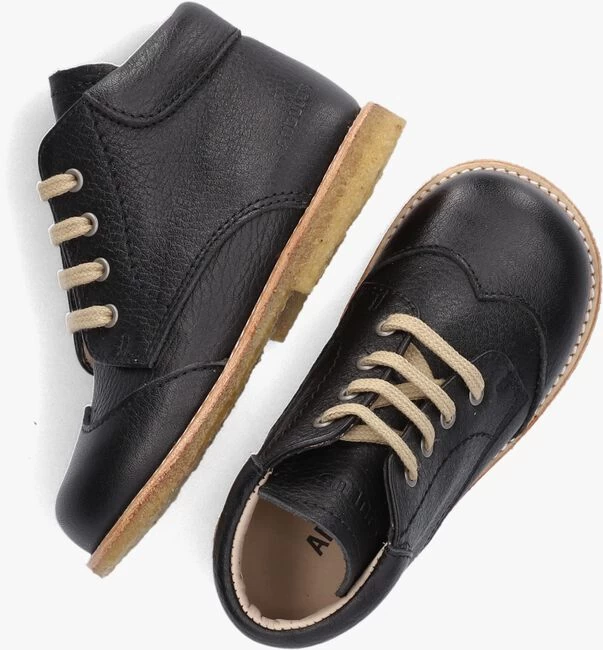 Het merk ANGULUS heeft zich al meer dan eens bewezen, het maakt namelijk al schoenen met de hand sinds 1904! Uiteraard altijd met de tijd meegegaan en nog altijd trendy zonder af te doen aan comfort. Want dat is hoe het allemaal begonnen is. Trends mogen er zijn maar ze moeten niet in de wegstaan voor comfort. Zeker niet bij groeiende kindervoetjes die volop in ontwikkeling zijn. Deze te leuke veter boots 9200-101 zijn uitgevoerd in zwart leer en heeft een mooie decoraties aan de neus en hiel. Zo heeft het schoentje een mooie vleugel op de neus en een extra randje rondom de enkel. De schoen heeft een gemakkelijke vetersluiting waardoor je hem gemakkelijk passend kunt maken aan de voeten van je kleintje. Het binnenwerk heeft een leren voering met een vast voetbed en voelt comfortabel aan. De rubberen crêpezool is flexibel en buigt fijn mee met de voet en zorgt tegelijkertijd voor een goede grip en stabiliteit. Aan alles zie je dat ook dit schoentje uit de collectie gemaakt is van de hoogste kwaliteit materialen en met grote passie en vakmanschap.