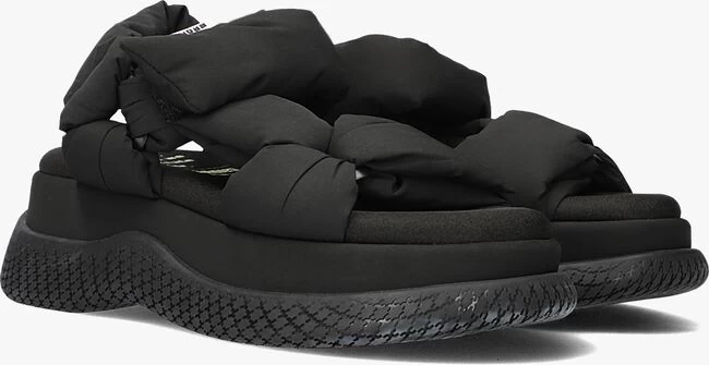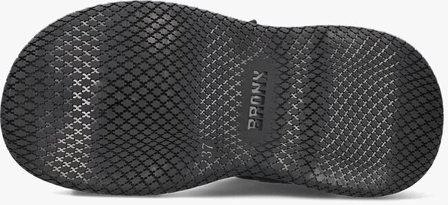 Een opvallende en grove sandaal, dat is dit zwarte model BRU-TE van het merk BRONX! Deze sandaal is gemaakt van textiele banden met een klittenbandsluiting. Het voetbed is van zwart textiel en is bedrukt met een coole tekst en het merklogo. De chunky platformzool is onder de voorvoet 5 centimeter hoog en loopt naar achteren toe op tot bijna 7 centimeter en heeft een grof profiel. Combineer ze opvallend en tegelijkertijd supervrouwelijk met jouw lievelingsjurk of -broek!