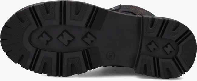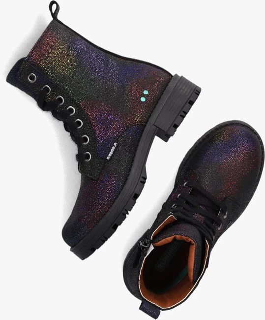 Bij een stoere meid horen stoere veterboots! Deze boots FAYA FANCY komen uit de schoenencollectie van het merk BUNNIES JR. De buitenkant is uitgevoerd in zwart leer met een super stoere metallic folie in verschillende kleuren. Leuke details: de aantreklus, de goudkleurige veterringen, de twee groene stippen en het rubberen merkembleem aan de zijkant. Het binnenwerk heeft een leren voering met een uitneembaar voetbed. Dankzij de ritssluiting aan de binnenzijde van de boot trek je ‘m gemakkelijk aan en uit. De rubberen zool met chunky uiterlijk  zorgt niet alleen voor een goede grip maar benadrukt ook de stoere look. De schachthoogte is 14 centimeter. Combineer ‘m onder een leuke jurk of stoere jeans!Â