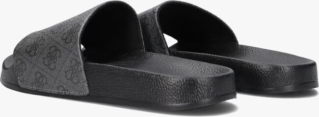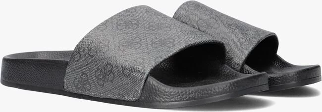 Een comfortabele zwarte badslipper COLICO van het stoere merk GUESS. Dit sportieve model is volledig uitgevoerd in rubber en heeft stijlvolle details. Zo is de brede grijze band over de voorvoet gesierd met de welbekende Guess merkopdrukken die hem een luxe touch geeft. Het zwarte voetbed is licht voorgevormd en voorzien van een grove structuur. Het stevige profiel in de loopzool geeft je een goede grip en voorkomt uitglijders bij het zwembad. Ga relaxt op stap met deze comfortabele badslippers!