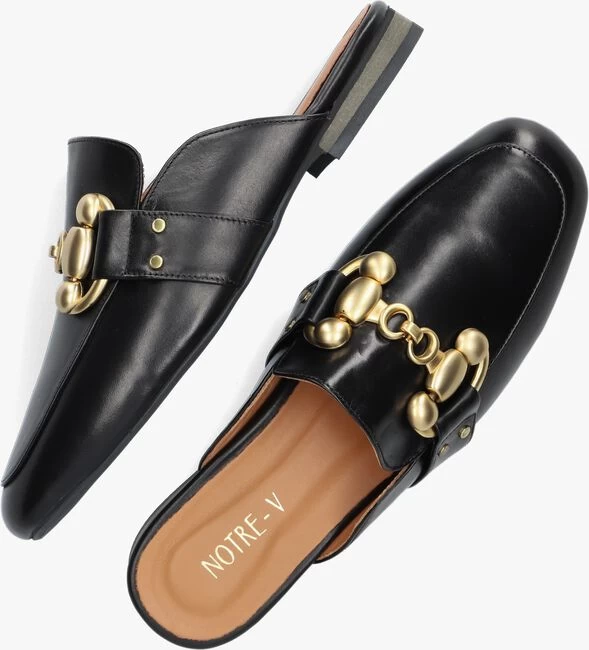 De elegante, Italiaanse ontwerpen van het merk NOTRE-V zijn er voor de verfijnde vrouw die er graag effortless chic uitziet. Gemaakt van luxe materialen met subtiele accenten en een knipoog naar de laatste trends. Deze loafer 133 9746 met open hiel is uitgevoerd in zwart gladleer met een goudkleurig detail op de wreef. De voering is van leer en de schoen heeft een vast, leren voetbed met demping voor extra comfort. Verder heeft dit model een afgeronde carré neus en een laag hakje van 1,5 centimeter. Draag dit item onder een jeans, jurk of rok. Waar ga jij voor?