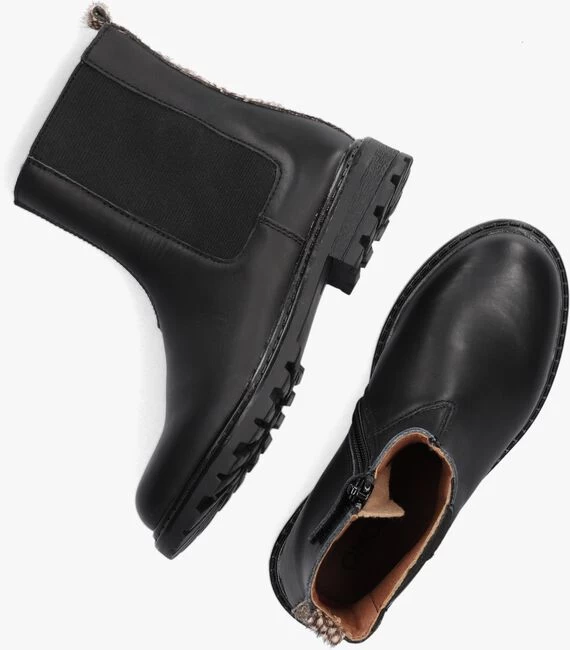Deze chelsea boot komt uit de collectie van het merk OMODA. De boot is uitgewerkt in zwart leer en heeft aan de binnenzijde een elastisch paneel en aan de binnenzijde een ritssluiting, zo trek je ‘m gemakkelijk aan en uit! Een leuk detail is de ponyhair band op de achterkant. De schachthoogte is 12 centimeter. De binnenkant is gemaakt van leer en heeft een zacht uitneembaar voetbed. De rubberen zool is ruim 2 centimeter hoog en heeft een gripvast profiel. Waar combineer jij ‘m mee?