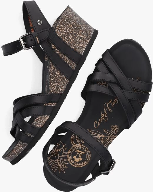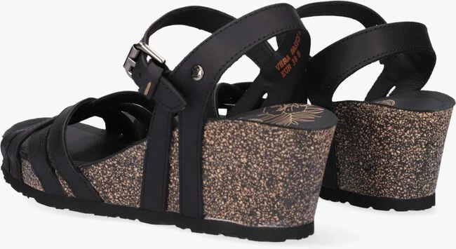Deze lichtgewicht, zwarte sandaal VERA BASICS B1 met sleehak is van het merk Panama Jack en heeft sierlijke bandjes van gevet leer en een leren voering. De bloemenprint op het voetbed en de donkere kurken sleehak van natuurlijk materiaal maken deze sandaal extra mooi. De loopzool is van rubber en heeft een grof profiel. De sleehak is 6 cm hoog en de plateauzool 2 cm dik. Met deze sandaal én de bijgeleverde katoenen tas ben je klaar voor de zomer!