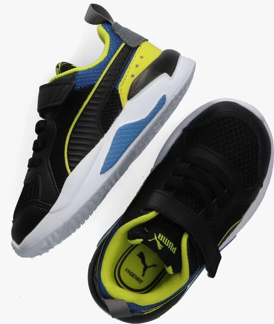 Maak kennis met deze chunky sneaker X-RAY AC INF van het merk PUMA. Deze zwarte sneaker met blauwe en neongele accenten heeft een retro design met veelzijdige vormen en overlays voor extra ondersteuning en een vintage look. Hij is uitgevoerd in mesh met panelen van lederlook en voorzien van een elastische vetersluiting en een extra klittenband over de wreef. Op de tong en hiel bevinden zich de herkenbare PUMA Cat-logo’s en op de zijkant is de golvende PUMA-stripe te vinden. De uitneembare inlegzool van SoftFoam+ maakt de comfortfactor nog wat hoger en zorgt voor een zachte voetafwikkeling bij elke stap. De schoen is gevoerd met textiel en door PUMA’s dempingstechnologie ervaar je een lichtgewicht gevoel. De rubberen zool met uitbundige vormen heeft een sportief profiel voor flexibele grip en helpt slippen en uitglijden voorkomen. Combineer ‘m onder een coole jeans met de pijpen iets opgerold, zodat jouw PUMA’s lekker opvallen! Â