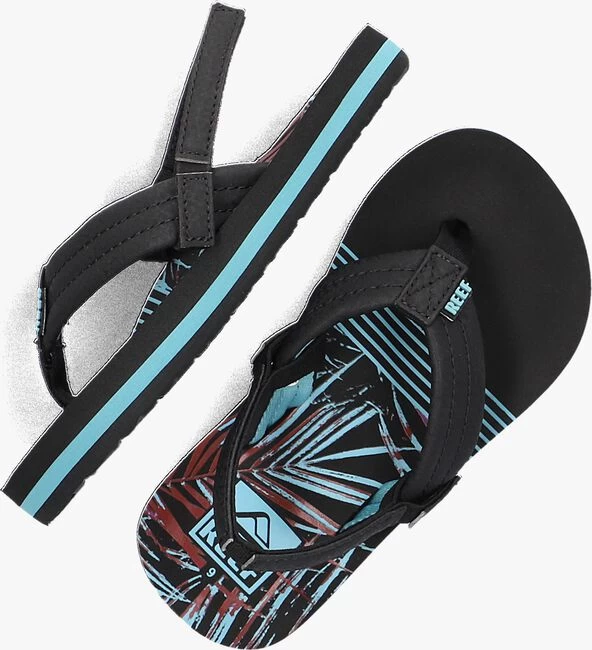 Fijn buitenspelen, een dagje naar de dierentuin of het strand, met deze sandaal LITTLE AHI uit de collectie van het merk REEF gaat dat zeker lukken. De buitenkant is gemaakt van zwart textiel en zijn voorzien van een elastiek aan de achterzijde waardoor je ‘m niet alleen gemakkelijk en snel aan- en uittrekt maar ook nog eens perfect passend maakt aan de voet. Het voetbed met bladeren is uitgevoerd in rubber en zorgt voor een fijne demping en een goede afwikkeling van de voet. De zoolrand is gesierd met een blauwe accentstreep en de loopzool heeft een gripvast profiel.