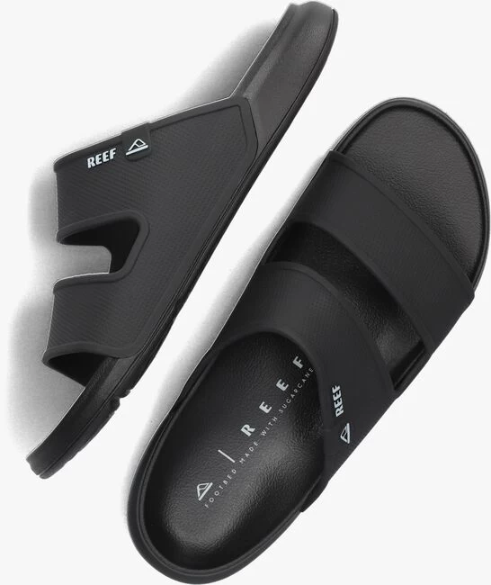 Uit de collectie van het merk Reef is deze onweerstaanbaar comfortabele slipper OASIS DOUBLE UP. Dit zwarte model heeft een bovenwerk van twee brede wreefbanden van rubber met een merkembleem en een merklabel aan de zijkant. De voering bestaat ook geheel uit rubber. Het voorgevormde voetbed is van rubber en heeft een anatomische ondersteuning voor optimaal comfort en demping. De gripvaste rubberen zool loopt naar achteren op naar zo’n 3 centimeter dik. De ideale slipper voor ieder avontuur!