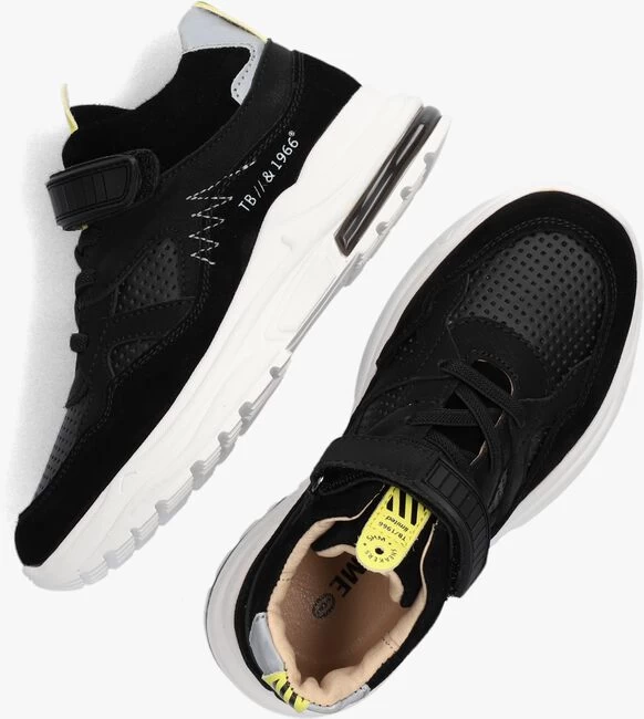 Welk stoer jochie rent ervandoor op deze coole sneakers van SHOESME? Dit model NR21W005 is uitgewerkt in zwart leer met diverse overlays van suède, een gewatteerde enkelkraag en geperforeerde details op de neus en zijkant. De voering en het uitneembare voetbed zijn van leer wat comfortabel aanvoelt aan de voeten. De chunky witte zool heeft een zwarte accentstreep bij de hiel, is van rubber en heeft een grof profiel waardoor je goed kunt rennen, spelen en klauteren. Dit model beschikt over handige elastische veters die je niet hoeft te stikken en je trekt ze super sneller aan- en uit door de klittenbandsluiting en het gele leren label op de tong. Met deze sneakers aan je voeten steel je zeker de show op het schoolplein.